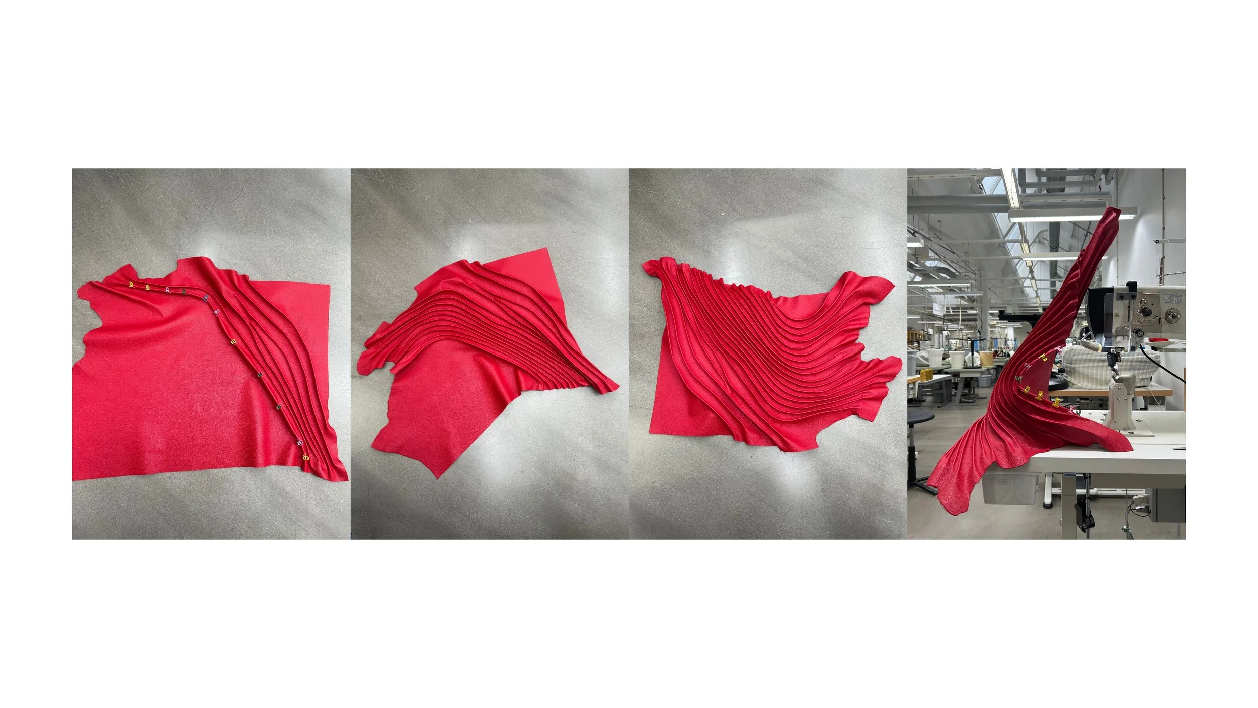 One project stands out particularly well: “Burning Desire”, a leather accessories collection made in collaboration with Readymade Archive, a studio that curates dead stock and discarded materials from Italian factories. The studio founder, Paola Barron, had reached out after coming across Robuta's work. She had just begun a new leather collaboration and wanted to explore what he might do with the material. One of Readymade's partners is Gruppo Mastrotto, a manufacturer that works with leather as a by-product of the meat industry - hides that would otherwise be discarded. "I asked Paola for leathers that no one wants," Robuta says. And so he got a dye lot in deep red, unpopular with buyers. It fit well into his practice of making from what others overlook.
