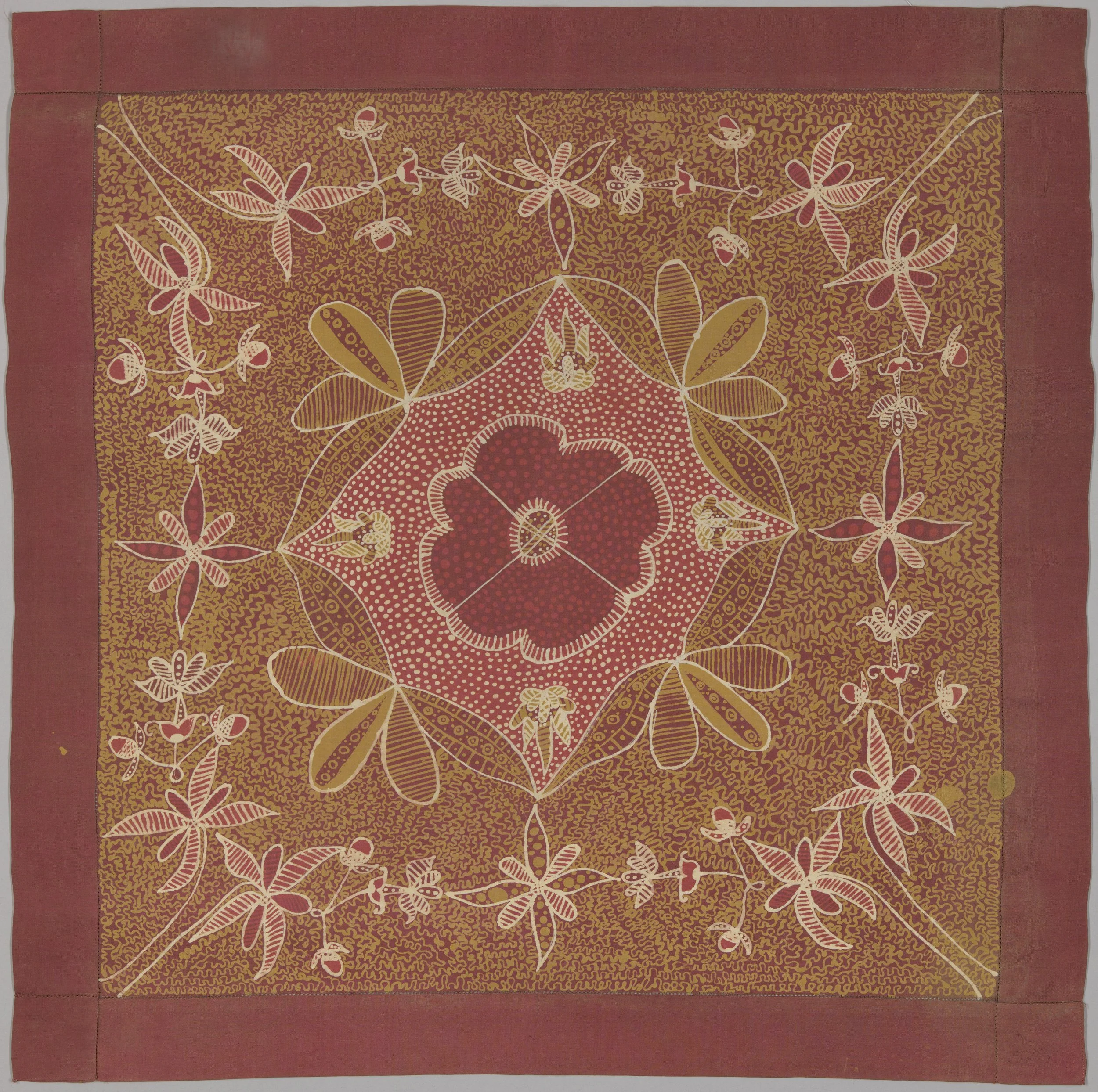 Batik is a resist-dyeing technique in which, put very simply, patterns are formed by applying wax to cloth before dyeing. Its elaborate, fine ornamentation is gradually built through successive layers of wax and dye, applied in repeated stages. The term batik is also used to describe patterned textiles created with this method. It has existed in various forms across the world since antiquity, but in Java it reached its most sophisticated form. Its etymology is traced to the Javanese words amba (“to write”) and titik (“dot”), referring to the act of drawing in small marks.